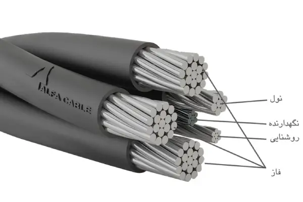 ساختار: دارای 4 هسته (3 فاز + نول) یا 2 هسته (فاز + نول)، هسته‌ها به صورت به هم چسبیده (Bundled) و عایق‌شده با XLPE یا PVC.، برخی مدل‌ها دارای هسته نگهدارنده فولادی در مرکز یا یک هسته تقویت‌شده برای تحمل وزن. اگر میخواهید درباره کابل فشار ضعیف بیشتر بدانید مقاله آن را مطالعه کنید.